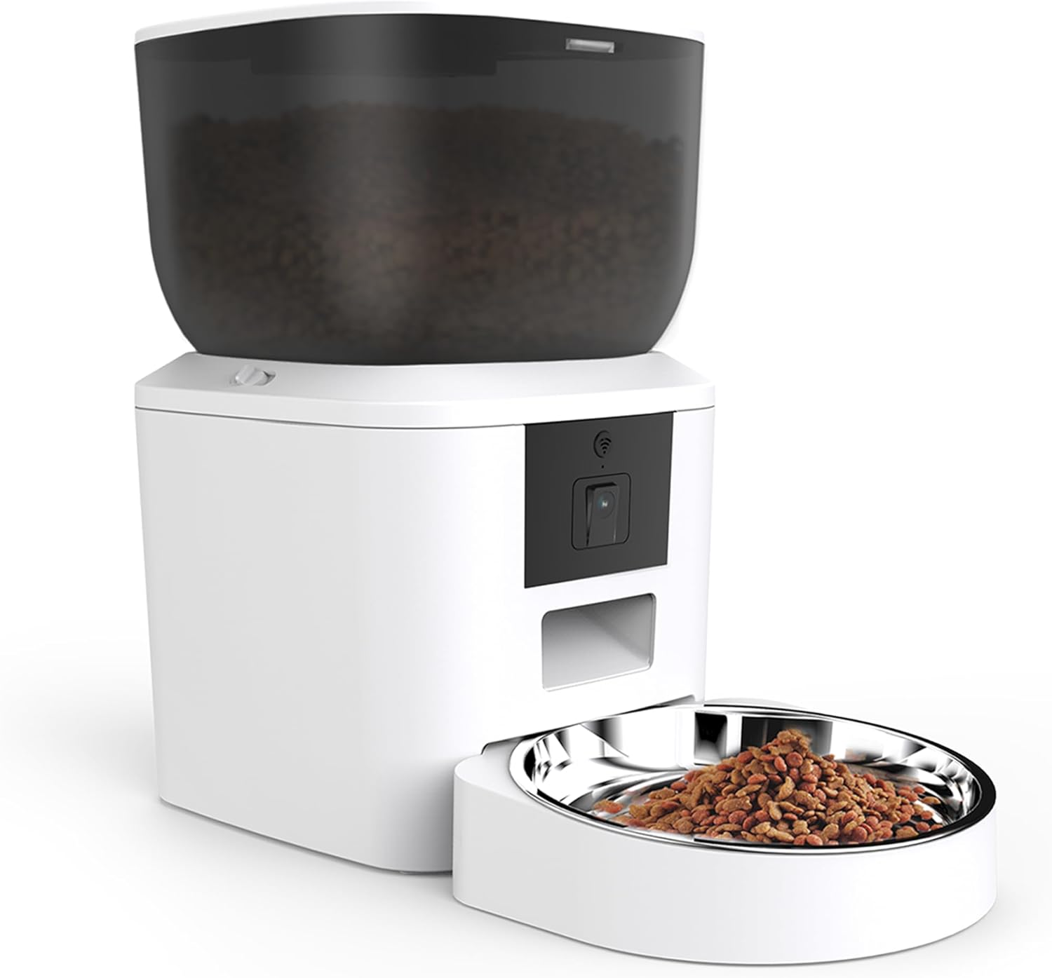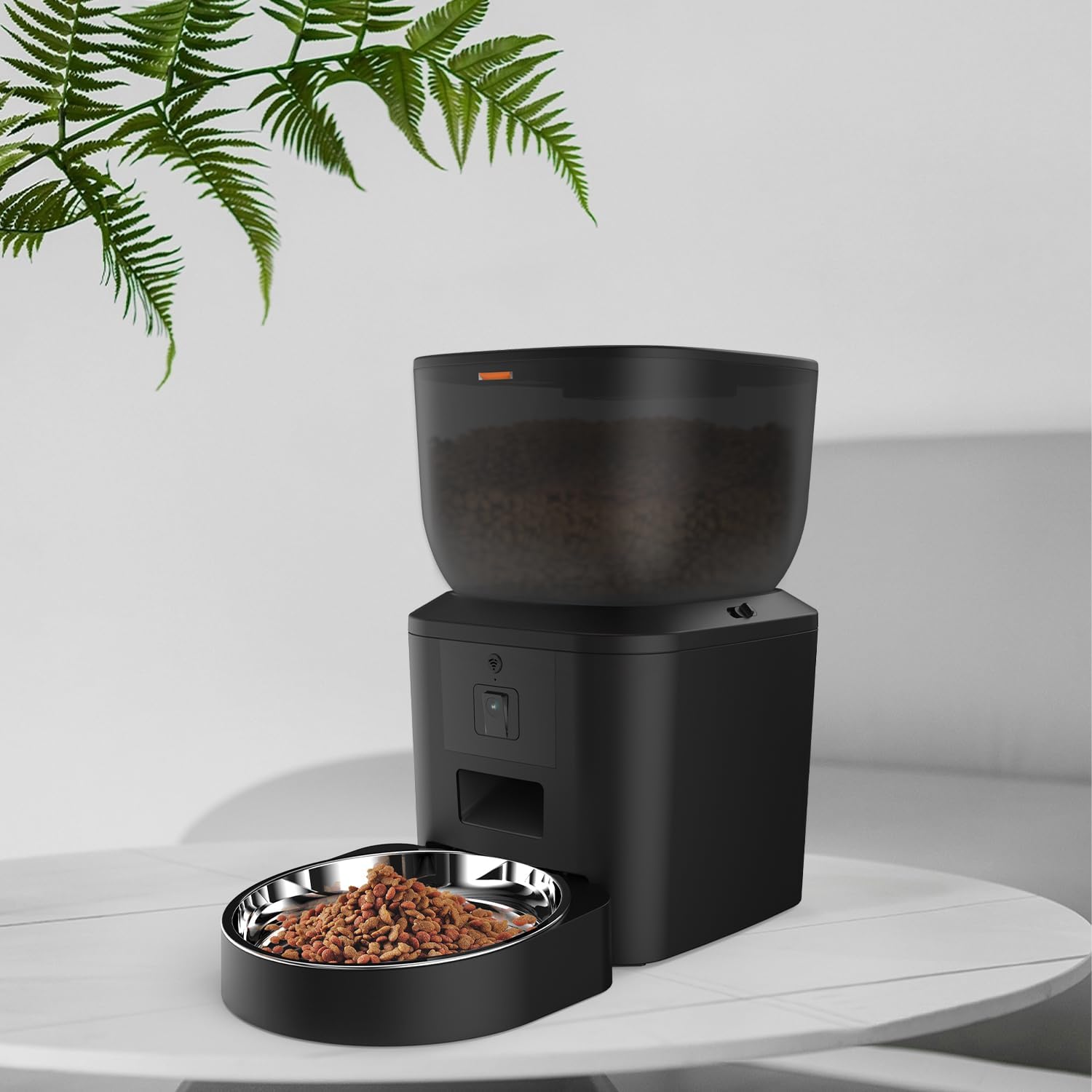 APP Controlled Automatic Dog & Cat Feeder, APP Controlled, with Freshness Preservation, Timed Cat Feeder with Stainless Steel Bowl. 4L Capacity Up to 6 Meals Per Day and 1-15 Portion for Cats & Dog