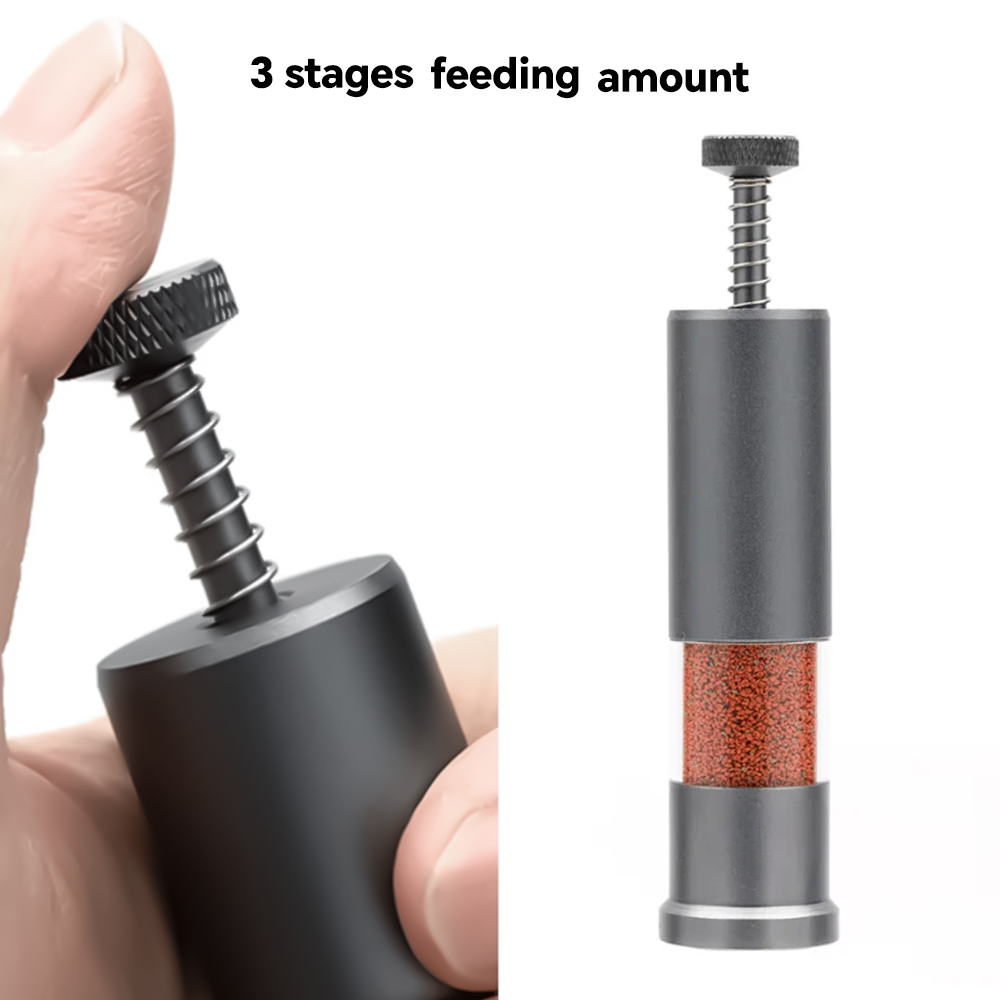 AQUAPRO Fish Tank Feeder Small MINI Feeding Aquarium Accessories Fishbowl Carp Water Food Goldfish Fishing Goods Tropical Betta is a mini aluminum alloy feeder, it has different pressing depth can achieve three level of feeding, with more fish and multiple presses to increase feeding, moderate elasticity for easy use limited feeding can prevent over feeding from polluting water quality, after surface sandblasting, the anodized texture is extraordinary without leaving fingerprints, and designed with acrylic transparent parts.