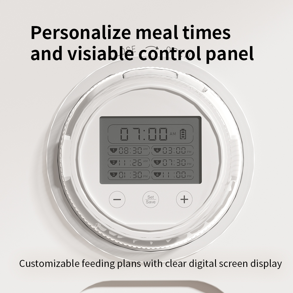 The Automatic Cat Feeder offers real six-meal scheduling for both dry and wet food, ensuring versatility. It includes 2 ice packs to maintain food freshness and runs cordlessly for 180 days using 3 AA batteries. Certified with CE, it complies with EU safety standards, providing market access and quality assurance.